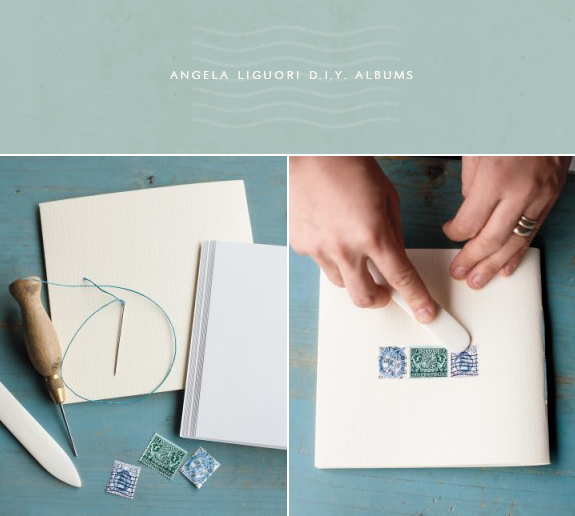 I usually don’t like to post a d.i.y. that I didn’t create myself, but this one by Angela Ligouri (if you haven’t seen it) is so simple + beautiful that I felt it warranted some attention. This would be a perfect project for a gift (if you are stumped or stressed), it doesn’t take a long time and most of the supplies are readily available at your local art store. I always give gifts of photographs to people that are hard to shop for or have ‘everything’ already. I take photos over the year and get massive complaints of never seeing the images and then I gift them on special occasions. I don’t like to frame, because I think that interior design decisions are best left to the individual, it’s so personal and I would hate to get it wrong, but an album is a great way for the recipient to re-live the experience. I love to see the wistful expressions that emerge, when they flip through the photos (a.k.a. memories). It’s such a thoughtful gift and if you make the album as well? Not only would it be that much more special, it will also keep you on a budget. On Angela’s album she featured some of her vintage stamps, but I do think the addition of (shameless plug here) a custom postmark stamp would be a nice touch too. This is a beautiful and easy project (Angela Ligouri herself assured me). You can find it in the latest issue of Martha Stewart and can also find it on the Craft’s Dept. blog. Have fun!