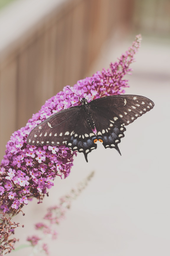 We have butterfly bushes here! My mom has always kept them in her yard to make sure the butterflies stop by. Gorgeous.