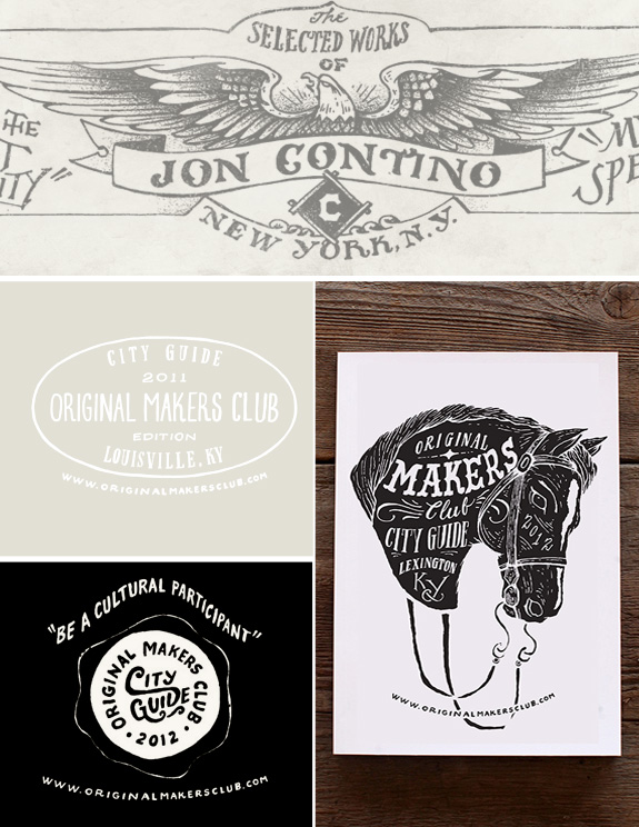 I am mad about Alphastructaesthetitologist + Illustrator Jon Contino. I was having tea with a new friend the other day (yes, I made ONE friend here, I hope!), we were discussing our love of hand lettering artists and Jon Contino came up, my eyes sparkled and I swooned, I knew that I must showcase his fine work on today’s Lettering Love post. Many of you may already be more than aware of Mr. Contino, for those that don’t I am hoping this is quite the visual treat. I love all his work, but it’s his work on the Original Makers Club that I am currently coo coo for. These pieces make me want to hitch a ride to Lexington, Kentucky and join this club that I know nothing about, his work is that good. I am sure he is going to be around for a long time and I am eager to see what other magic he has up his sleeve as I know it will be equally as coveted by moi.