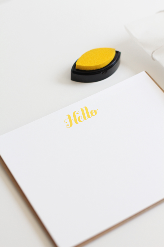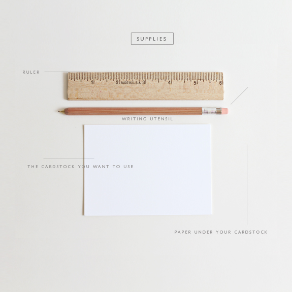 This has been a much requested tutorial and for such an easy process it was surprisingly a lot of steps to photograph! I assure you this is the easiest way that I have found to be able to stamp an impression in the middle of my stationery flat. I tried other equipment made specifically for stamping in the center of your cardstock, but found it a little complicated. I am also of the camp that believes less is more, if I don’t need to purchase any special equipment I won’t. So let’s gather our simple supplies. You will want to have the following supplies at your ready, we are going to create a template: