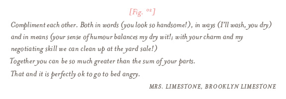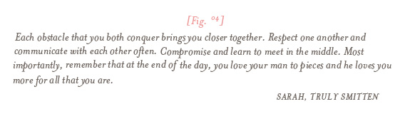I kindly asked begged for some marriage advice from the Mrs.(s) out there that I admire. Some have been married for many moons and others for just a short + sweet amount of time. I hope you enjoy reading their advice as I get ready to make the Fancy an honest man tomorrow. I am a bit out of my tree with last minute rushing (hmm? It’s not like I didn’t have six years to figure this out or anything…) Until next week, I bid you adieu.