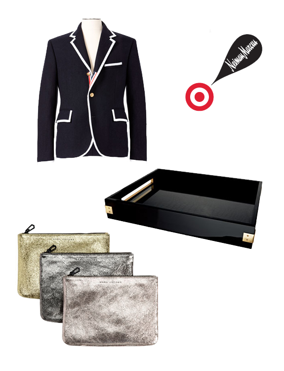 Yesterday or was it the day before? The days are all blending together, anyways, I watched as fashionista Andrea tweeted the launch of the ‘legendary’ partnership of Neiman Marcus + Target. She tweeted photos of the long, long lines that wrapped for what seemed like miles. She tweeted women in victory poses with the last Judith Leiber clutches in their uhm, clutches. She tried on cute sweatshirts and sequin tops and gave the play-by-play on fit. It was all very exciting, like shopping with a bestie but not having to leave your home. Today I did leave my home, to go to where else? Target. Not, for the partnership, my brain is currently sieve like and not retaining much, so I forgot about it way before I arrived. I had to go for the very exciting chore of buying laundry detergent–my life here is endlessly exciting. Target is also my closest supermarket and even though it’s nearly 20 miles round trip I had to go. When I got there I rounded the corner and was standing in front of the display of NM goodies. Can I tell you something? No one had touched it! It sat there pristine as I watched women and girls wearing tights instead of pants (for shame) walk by the display not even curious. Not even a side long glance, nada. It didn’t look like my Target received everything that was available (there were no Oscar De La Renta dog bowls), but it had a lot. I am thinking of starting a side business of buying and re-selling the items, just kidding, kinda. I feel so bad for the merchandise but secretly can’t wait for no one to buy anything so it goes on sale and I can buy that cute blazer and the tray. Have you seen the partnership in person? What do you think? It may be a little spendy for the average Target client, but for those that are familiar with the designers featured it feels like they are giving the products away, truly.