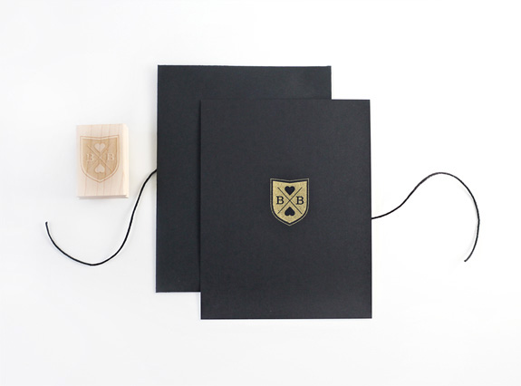 This last round of designs needed a lot of revisions so I could get a good stamped impression. That’s the nature of creating designs for these ‘miniature printing presses’, I am never quite sure how they will translate. On this one I took one of the original designs I posted and added a little heraldry shield to it for more ‘oomph’. I think it feels both prep + rock. The winner of this design is the newly minted Benders–Sue & Jamieson. I think this will be perfect to add to the outside of their envelopes when they need to write their many thank yous. When Mrs. Bender bakes her first big batch of brownies she can send Mr. Bender to the office with her married ‘logo’ on the glassine bags she is sure to wrap each one up in (or vice versa). It’s a sweet + simple stamp and I know it will look good in any color, but it does look particularly regal in gold. Congrats Mr. & Mrs. Bender! If you would like your own SS09 stamp just use the code SS09 to get a 50% discount until 8/7.