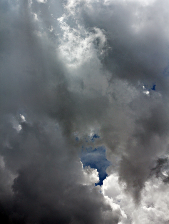 I love to get lost in the clouds, just staring and watching the rolling waves of fluff move and create familiar shapes. I thought it would be interesting to get the storm clouds in different phases for you. The first one I can totally see a heart, is that just me? The sky is just starting to darken but it’s a pretty deep indigo, the clouds are still bright white, there’s hope that the storm will pass. Alas, the second image the clouds start to congregate, darken and push out the last of the blue in the sky, the sun rays peek through but it’s all in vain as the clouds are on a mission; when they put their mind to it nothing can stop them. The final photo my world is cloaked in shades of gray, the sound of thunder makes the house shake–it’s storm time.