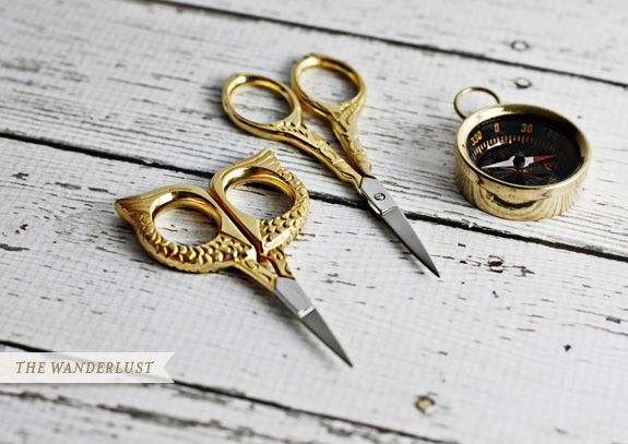 One of the sweetest girls I’ve ever met is Miss Danni Hong (actually a Mrs., but you know I love a good Miss, right?) recently opened up a delightful shop called The Wanderlust. Danni’s shop is a as sweet as she. There is a lot of vintage inspiration going on–think Anthro meets Japanese stationery shop. Danni, whom is also generous gave me these darling scissors, I already owned a pair of embroidery crane scissors so I think I now have the beginnings of a new collection! Danni suggested I use them for props, for someone like me that has been struggling with my product photography I was so appreciative for the thoughtful gift. The little compass, well that’s just so apropos for a store dubbed ‘wanderlust’, it came as a topper on the gift she gave me, when you have a gift that has a miniature compass attached to it you know it’s going to be good. Danni’s shop is closed for the holidays, but keep it on your radar, it won’t disappoint.