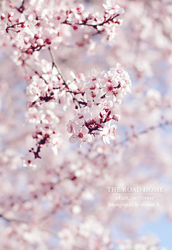 We were supposed to just drive by Ukiah, California we did after all have a hotel booked in charming Petaluma, but my husband was tired and we were both cranky with hunger. I can tell you it’s not easy finding a motel that accepts dogs at the 11th hour. We ended up pulling up to a motel that took dogs and looked like it was free from bed bugs. My husband kept assuring me that bed bugs only live on the East Coast, but I think he was just saying that to assuage my mania. When we drove into the parking lot in the dead of night I couldn’t see two feet ahead of me, so I didn’t know that I would wake up to find these cherry blossoms blooming in between the blacktop. We woke up very early the next morning and the air was thick with haze and soft sunlight, there were so many blooms that everything had a rosy, pink hue to it. It was quite the sight and will be what I file in my memory bank about Ukiah, gosh knows I want to forget about the nearly $30 pizza we ordered that had a burnt bottom and tasted like sugar coated cardboard.