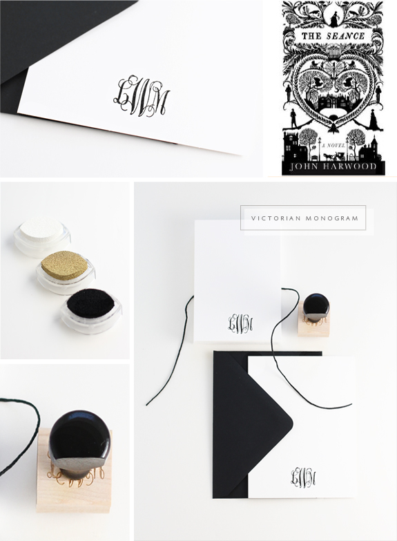 Back to the book, I downloaded The Seance by Jon Harwood recommended by Heather H.. It wasn’t terrifying as some reviewers would have you believe (thank goodness!) and there was a part that got a bit convaluted but stick with it and it’s just an enjoyable read set in Victorian England when spiritualism was the rage. Once it was done I didn’t want to leave the era and come back to the 21st century (see above) so I started reading a non-fiction book called The Napoleon of Crime by Ben McIntyre. I’ll let you know all about it when I am finished but so far it’s been utterly delightful, the names of the criminals and their gangs are so colorful, it’s worth the price of admission right there! The above monogram was inspired by a more genteel era and may be a little on the intricate side for most but I love the intertwined letters and flourishes. I think if you stamped this on a graphic pattern you could easily ‘modernize’ it. The winner of this monogram is Lee & Megan W. after I made this I realized that the W.’s are with child but I think they can still use it (I hope) at least for a few more days? Congrats Megan + Lee!